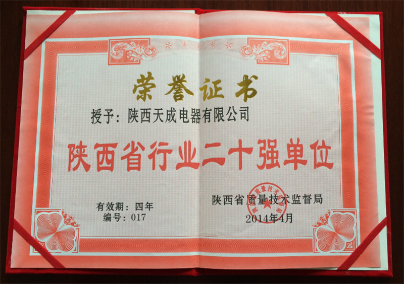 2014年行业20强证书